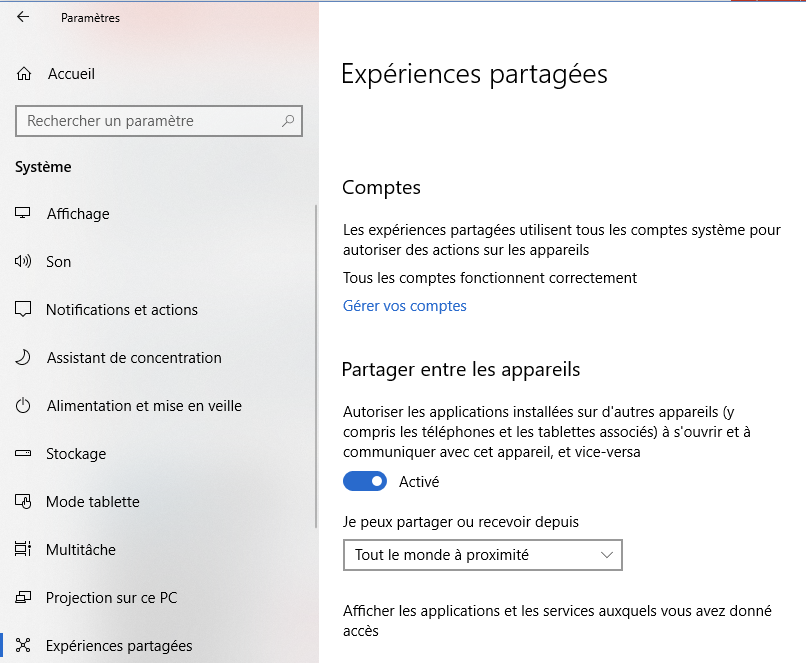 Il suffit d’utiliser les boutons partages disponibles dans les applications (Edge, Explorateur de fichiers, Photo,…), les PC pouvant recevoir le fichier apparaitrons dans l’écran suivant.