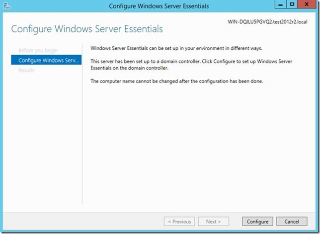 Un point important est rappelé dans cet écran : Windows Server Essentials n’est supporté que dans les environnement mono domaines.